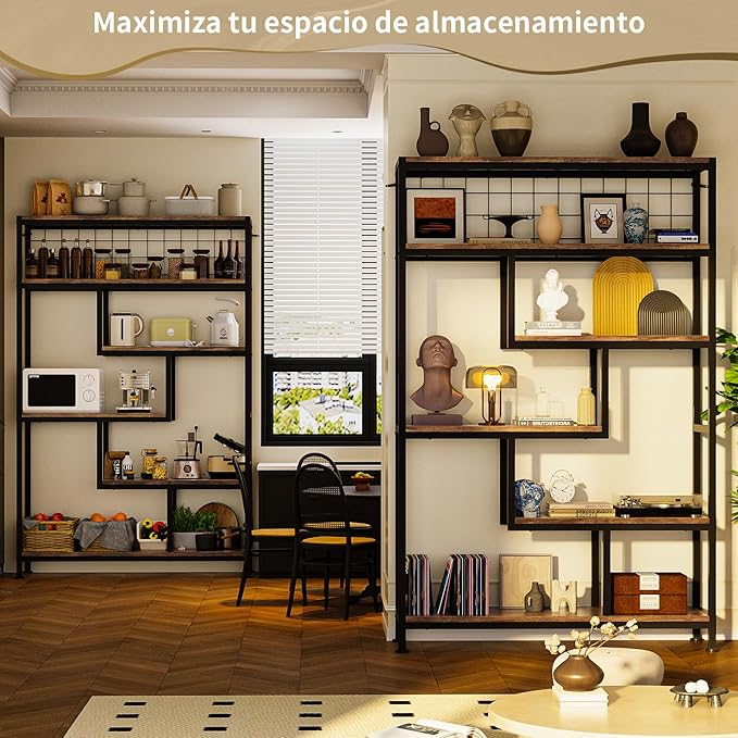 Librero de Madera Minimalista de 8 Niveles – Organizador Abierto de 180 cm para Sala u Oficina en Casa
