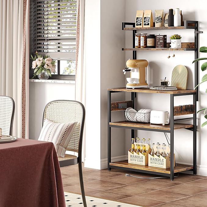 Soporte para Bocinas Vintage 4 Niveles – Estante Multimedia con Ruedas, Regleta, Luz LED y Esquinero 60×48×80 cm