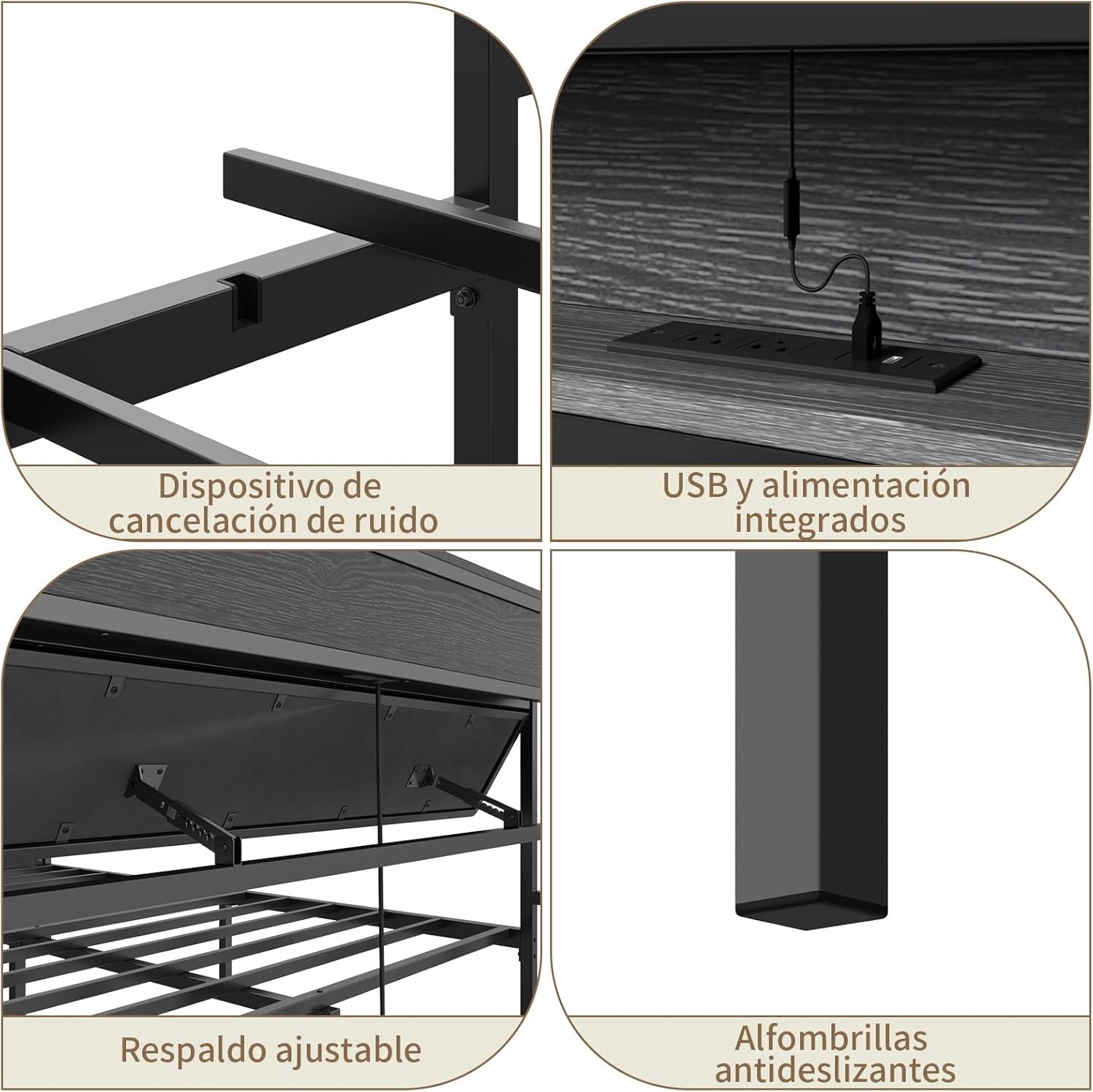 Con su estructura resistente de 1.4 m y su diseño minimalista, combina perfectamente con cualquier decoración. Además, cuenta con 2 salidas de carga y 2 puertos USB, para que mantengas tus dispositivos siempre listos sin necesidad de buscar enchufes.