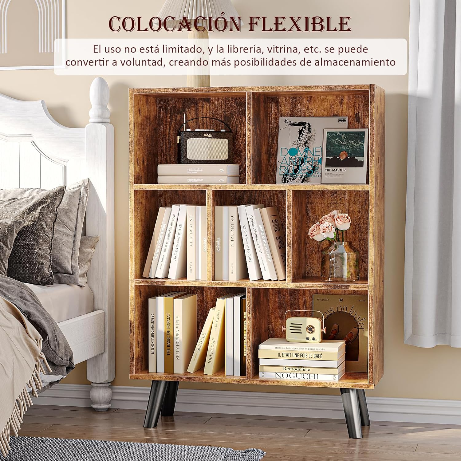 - 【Librero Organizador es Fuerte y Estable】Este mueble organizador duradero está hecho de tableros de alta calidad con acabado enchapado de alto brillo. Cada cubo abierto tiene una capacidad de carga individual de hasta 20 KG. Las patas inclinadas de este librero vertical están hechas de plástico grueso ecológico y están sostenidas por cuatro tornillos metálicos para mayor estabilidad.