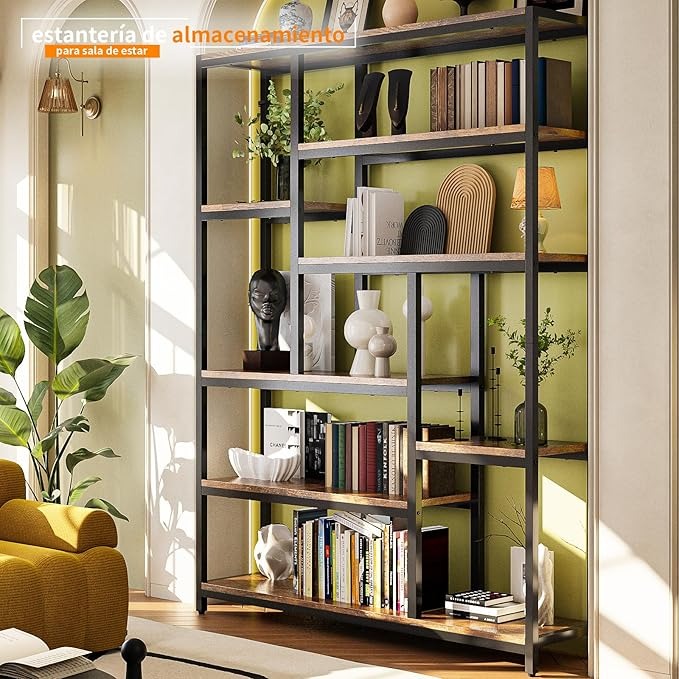 Librero de Madera Minimalista de 8 Niveles – Organizador Abierto de 180 cm para Sala u Oficina en Casa