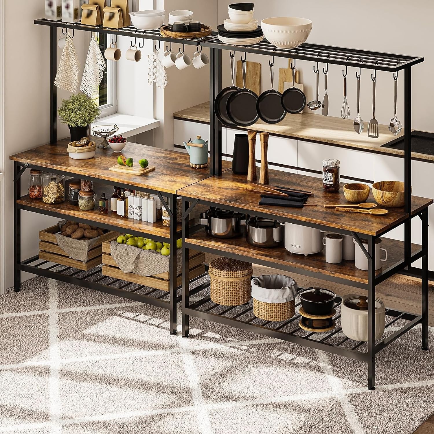 Tres niveles de almacenamiento: Ofrece espacio suficiente para ollas, sartenes, frascos, platos y otros utensilios de cocina.